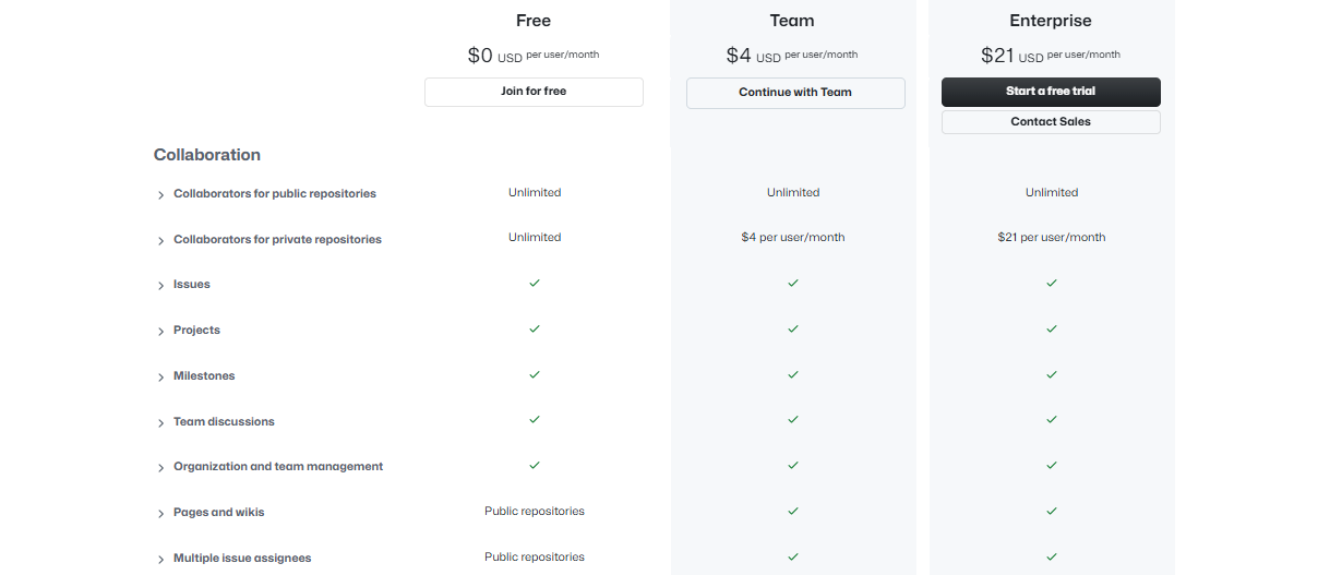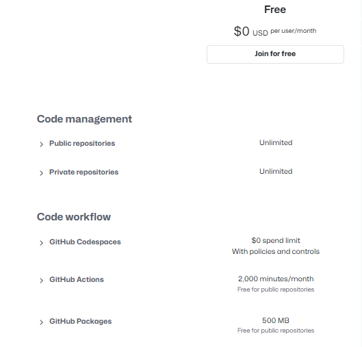 Comparison of Free and Paid GitHub